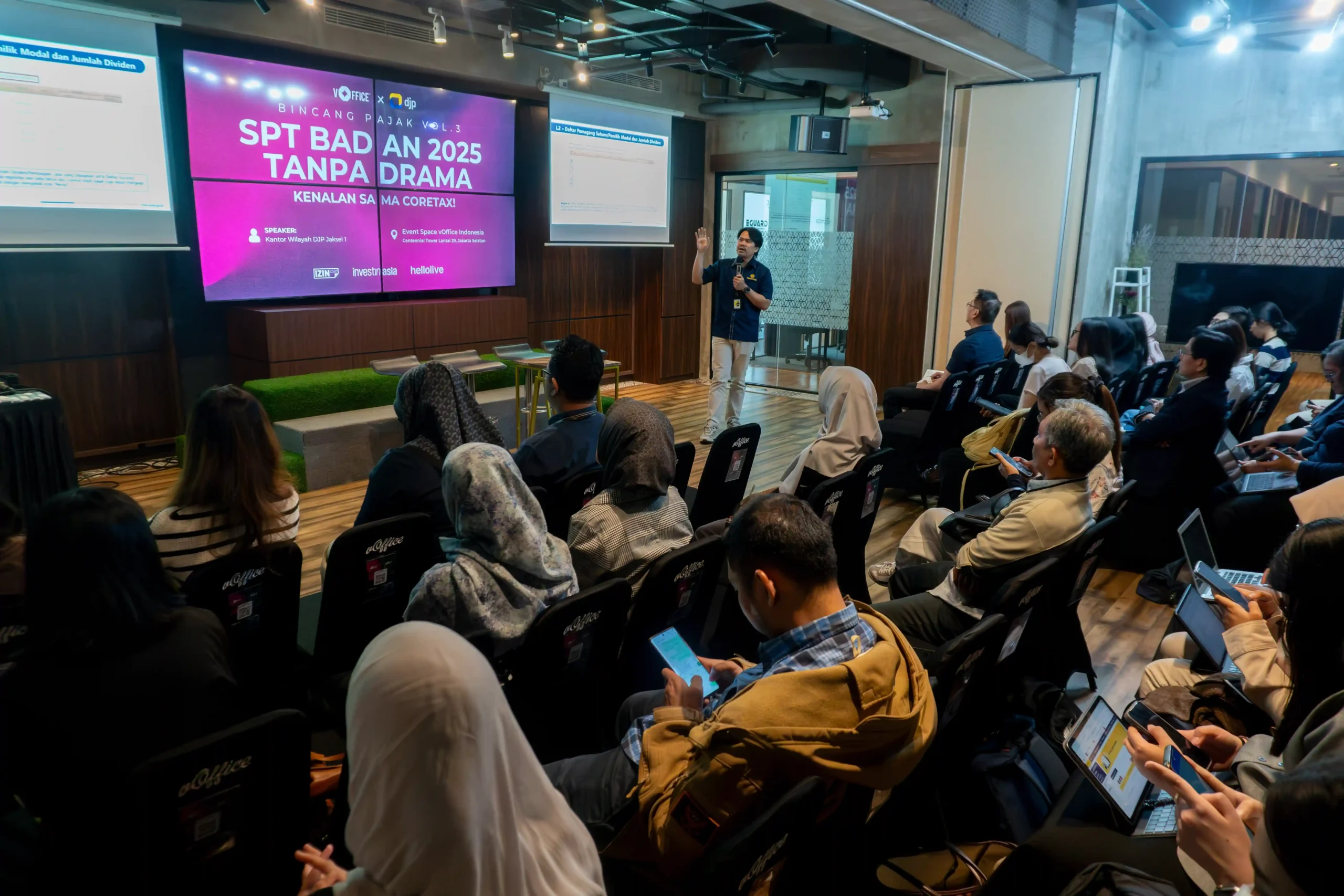 Merespons kebutuhan tersebut, vOffice bersama Kantor Wilayah DJP Jakarta Selatan I menggelar acara edukasi “Bincang Pajak Vol. 3: SPT Badan 2025 Tanpa Drama — Kenalan Sama Coretax!” pada Rabu, 25 Februari 2026 di Event Space vOffice Indonesia, Centennial Tower Lantai 29, Jakarta Selatan.