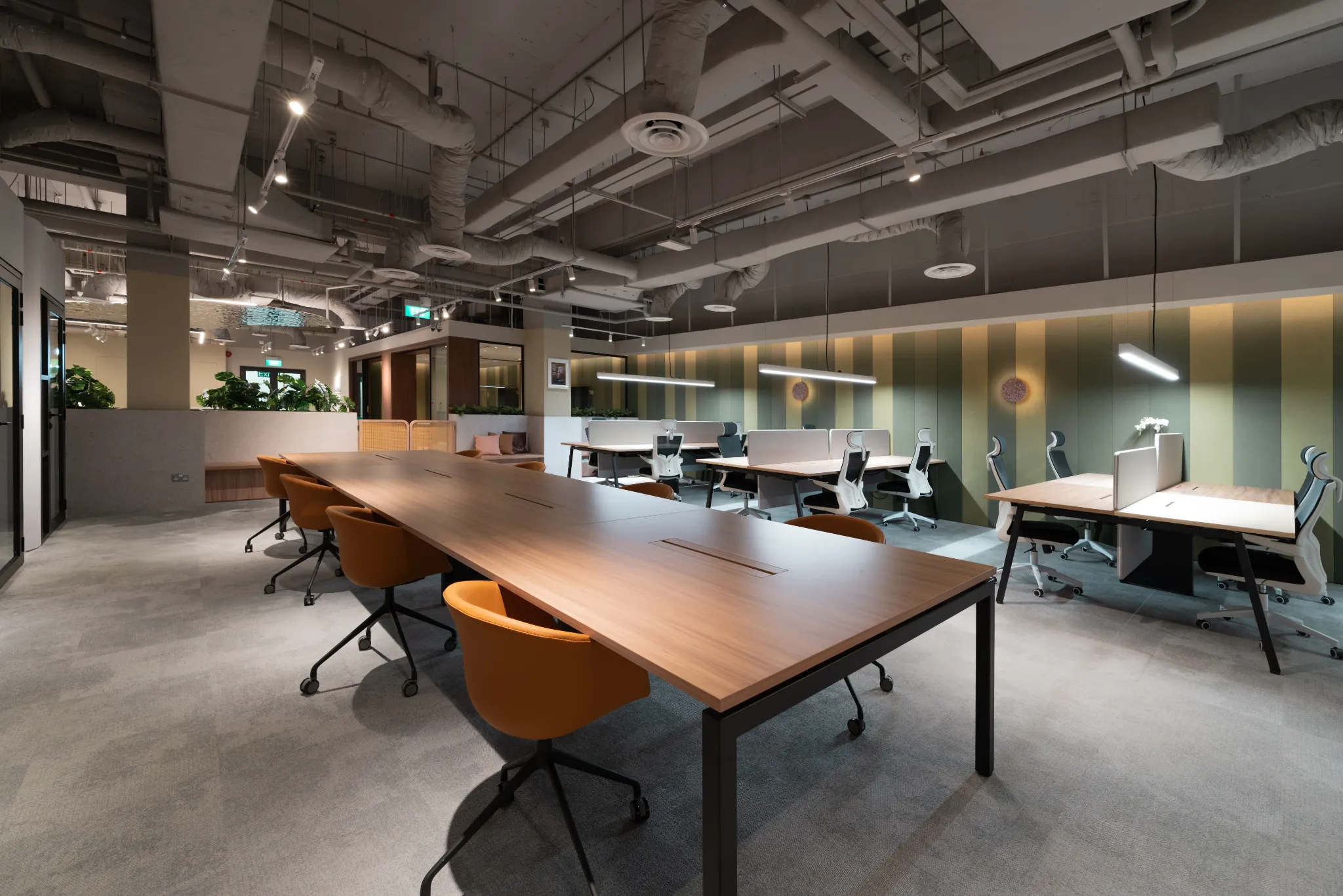 Hot Desking in the communal space area. Filled with amenities such as high-speed Wifi, printing services and free beverages.